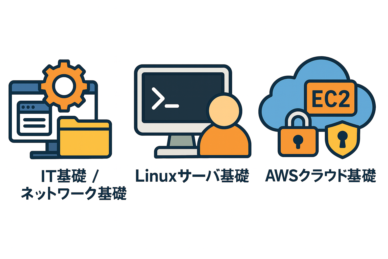本研修は、初学者を対象に、ITインフラエンジニアとして必要となる基礎知識と技術を体系的に学習することを目的としています。ITリテラシー、ネットワーク基礎、Linuxサーバ構築、AWSクラウドの基本までを網羅し、未経験からでも実務のスタートラインに立てるスキル習得を目指します。
